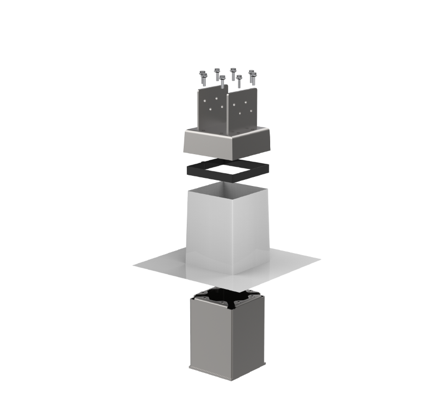 Our frames attach directly to the roof deck using Tek screws and our patented leak-free base attachments. This streamlined approach reduces material costs, time on site, engineering complexity and labor requirements.